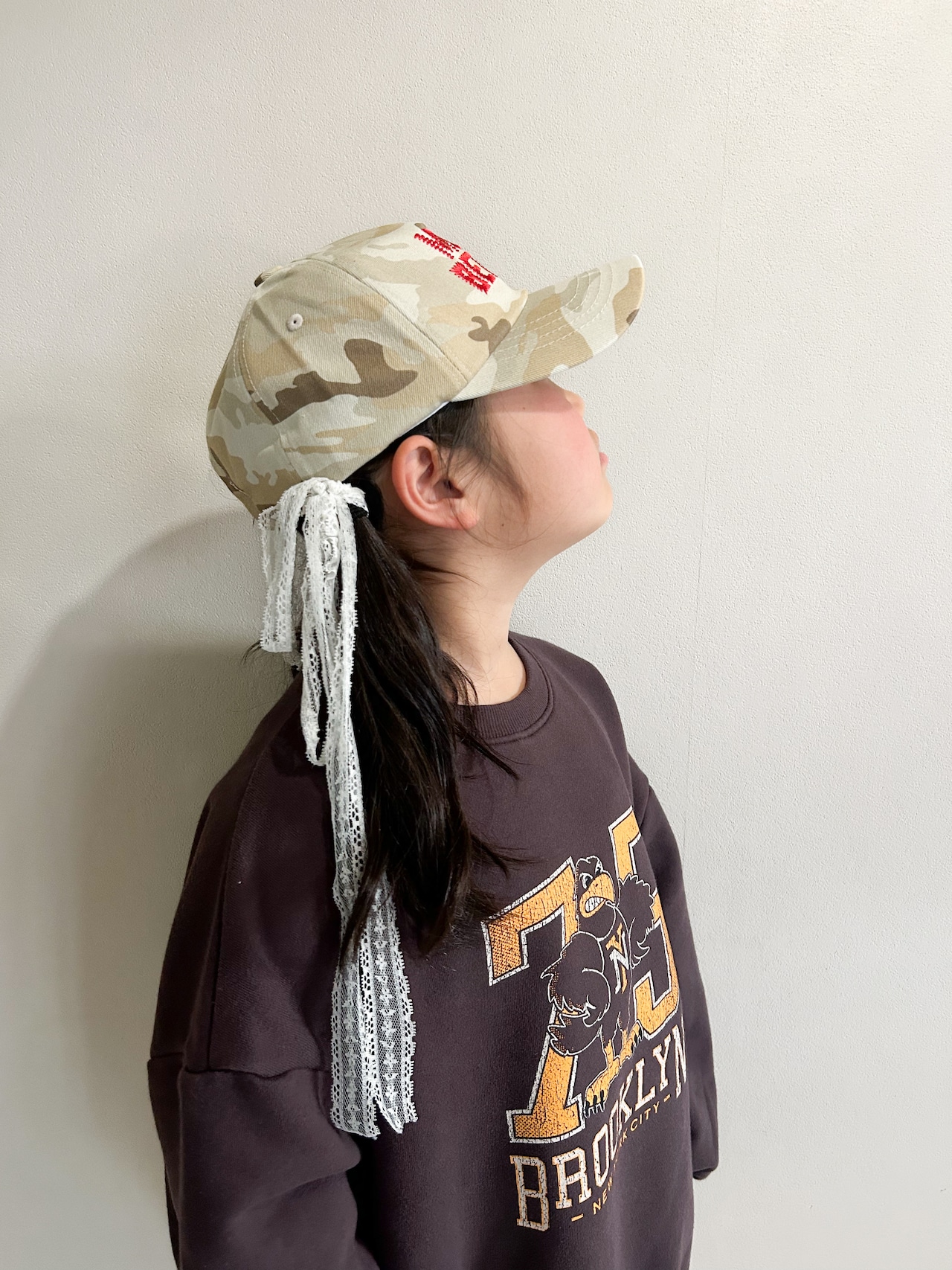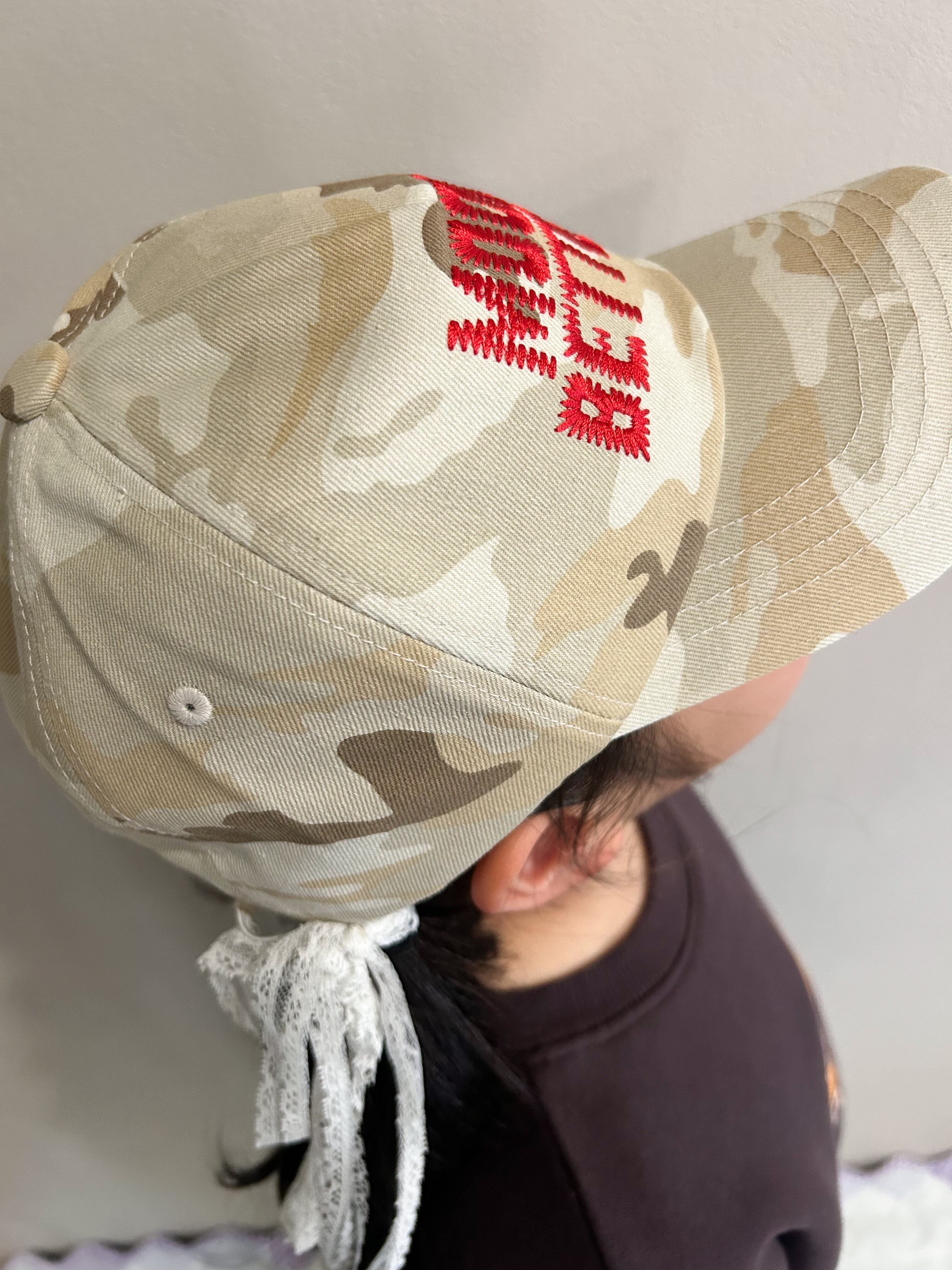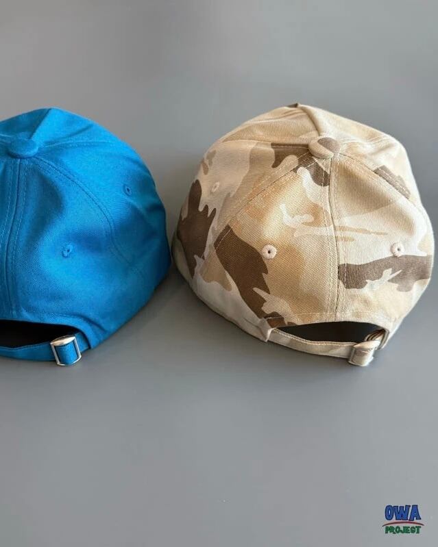 ベージュベースのカモ柄キャップは、