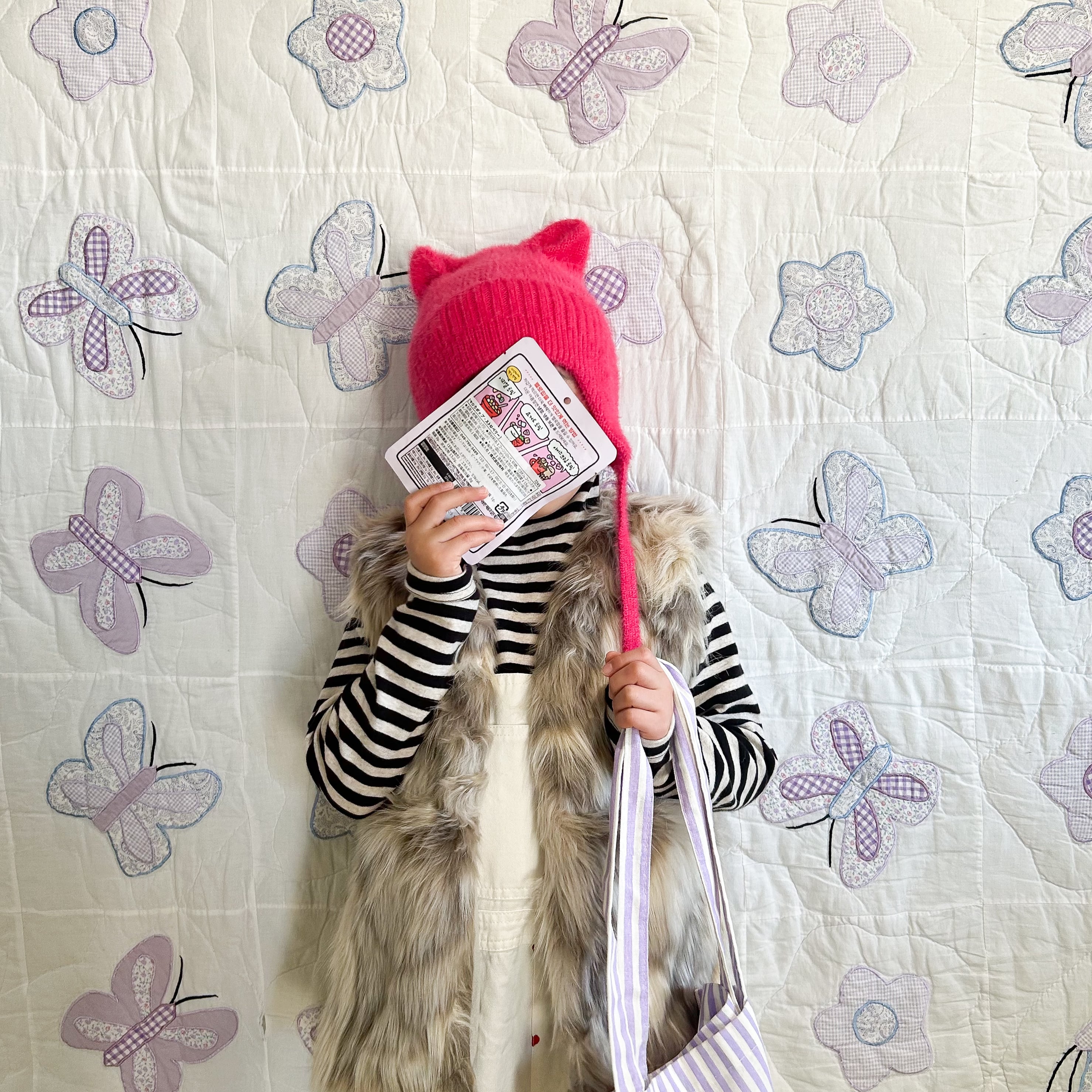 しっかりとしたヴィンテージ感のあるエコファーに、春まで合わせやすい淡いカラー
